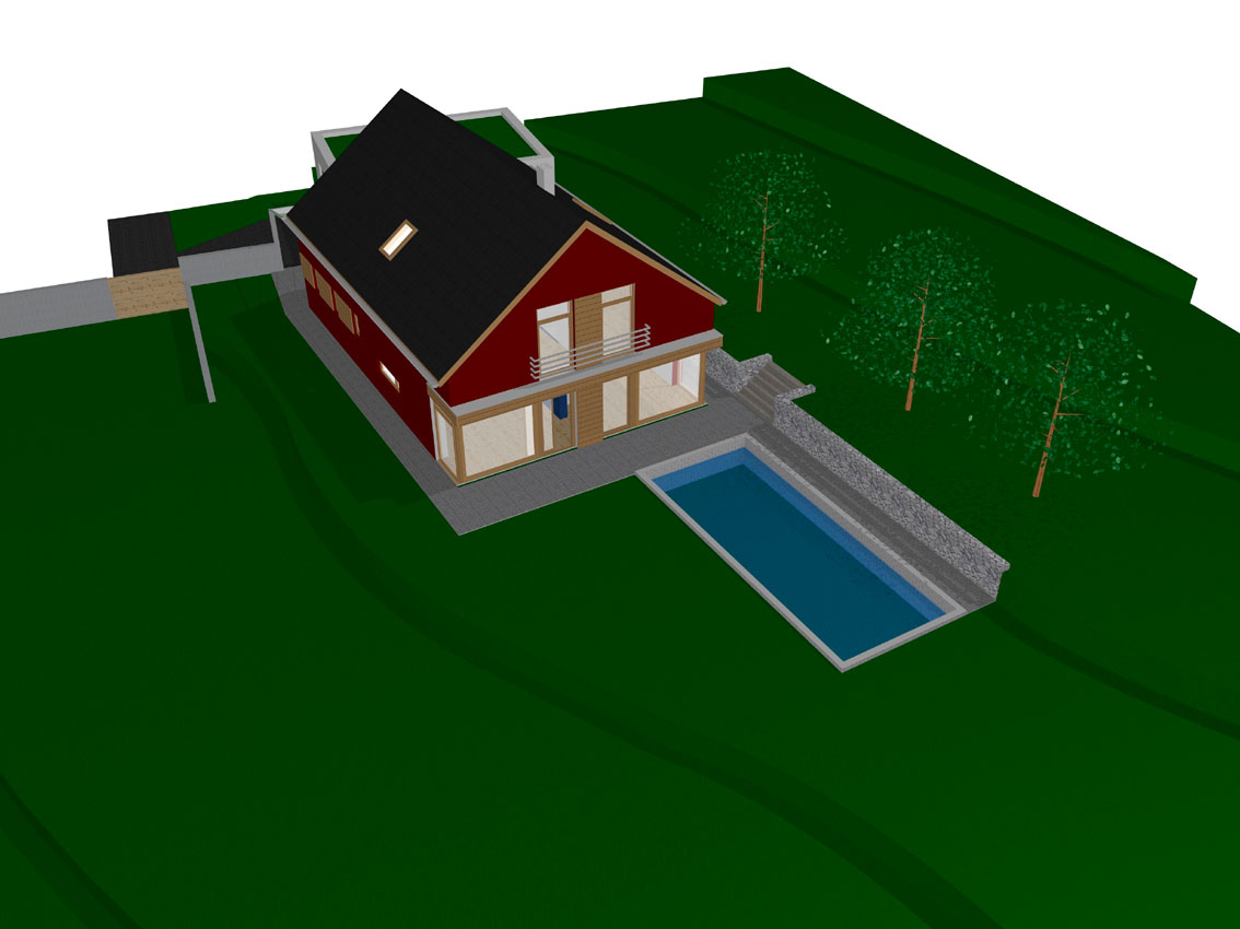 Přízemní dům s dílnou a garáží na rozsáhlém pozemku. Dům v nenásilné dominantní pozici na horizontu s exkluzivním výhledem do krajiny. Hmotovým uspořádáním se dům snaží o symbiózu s tradiční venkovskou zástavbou.
