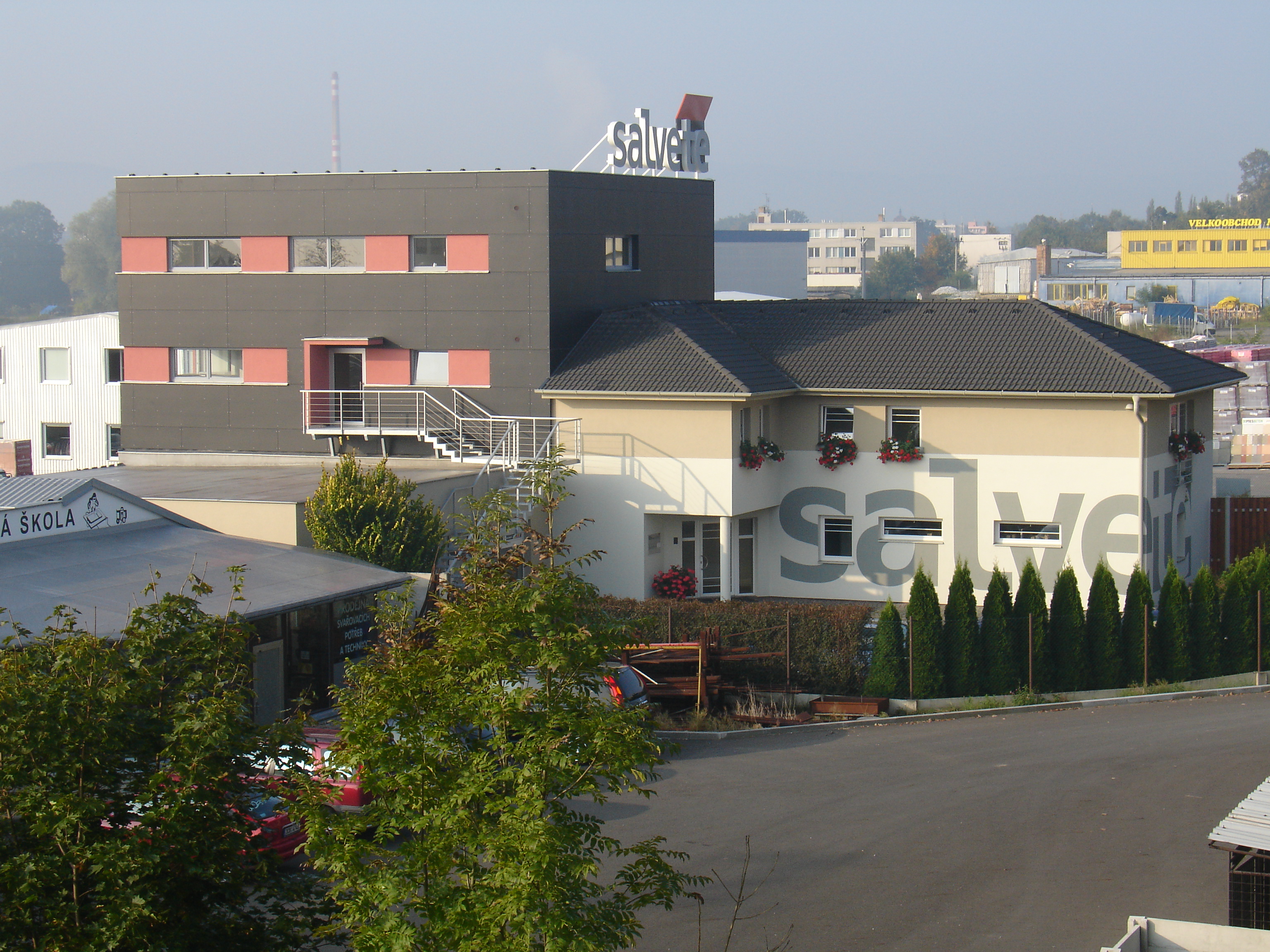 Na kraji města sídlí osvědčená stavební firma, která měla v úmyslu přestavět a dostavět svůj původní areál. Dostavba připomíná morfologicky černou krychli a stala se nepřehlédnutelným markantem této části města. Přestavba se omezila na nové grafické pojetí fasád.