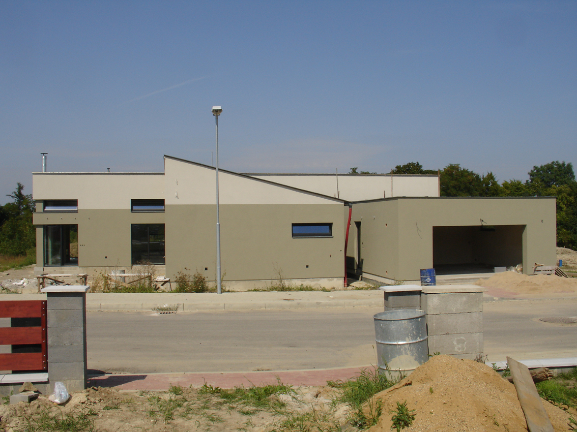 Rodinný dům soudobého výrazu se snahou o jasnou definici venkovních prostor - vstupní a hospodářský dvůr a pobytová část pozemku.