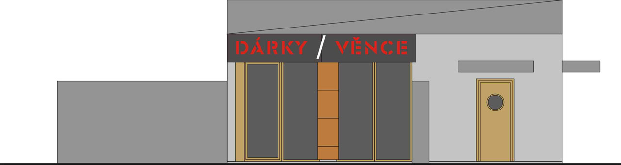 Drobný přízemní pavilon s komerční a soukromou částí na komplikované zbytkové parcele zaujme morfologií střechy s kosým pilovitým uspořádáním.