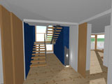 Menší domek s volnou dispozicí a překvapivě účinným vyzněním rodinného pokoje, otevřeného do krovů.