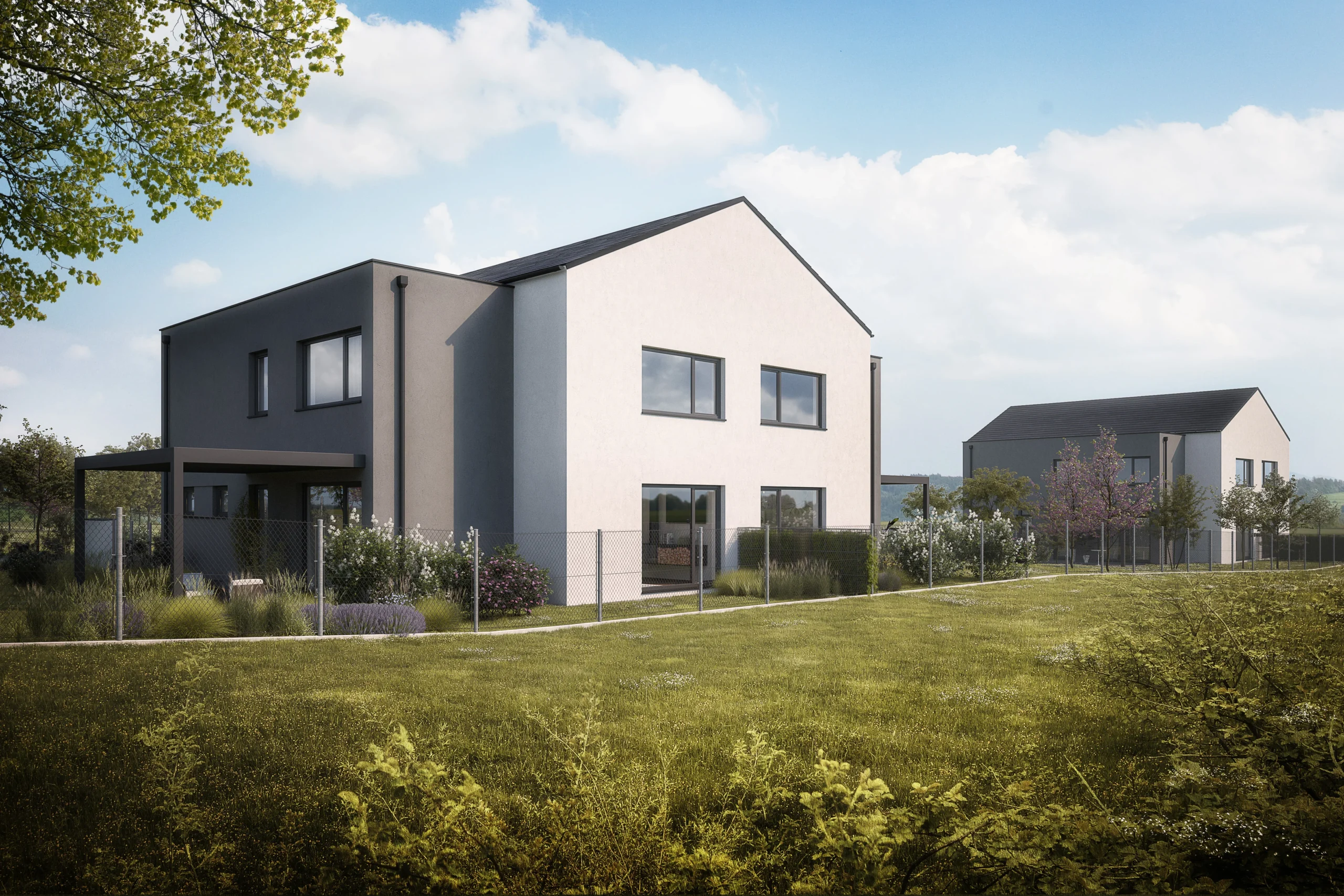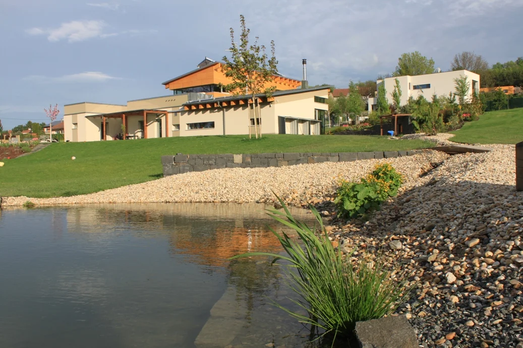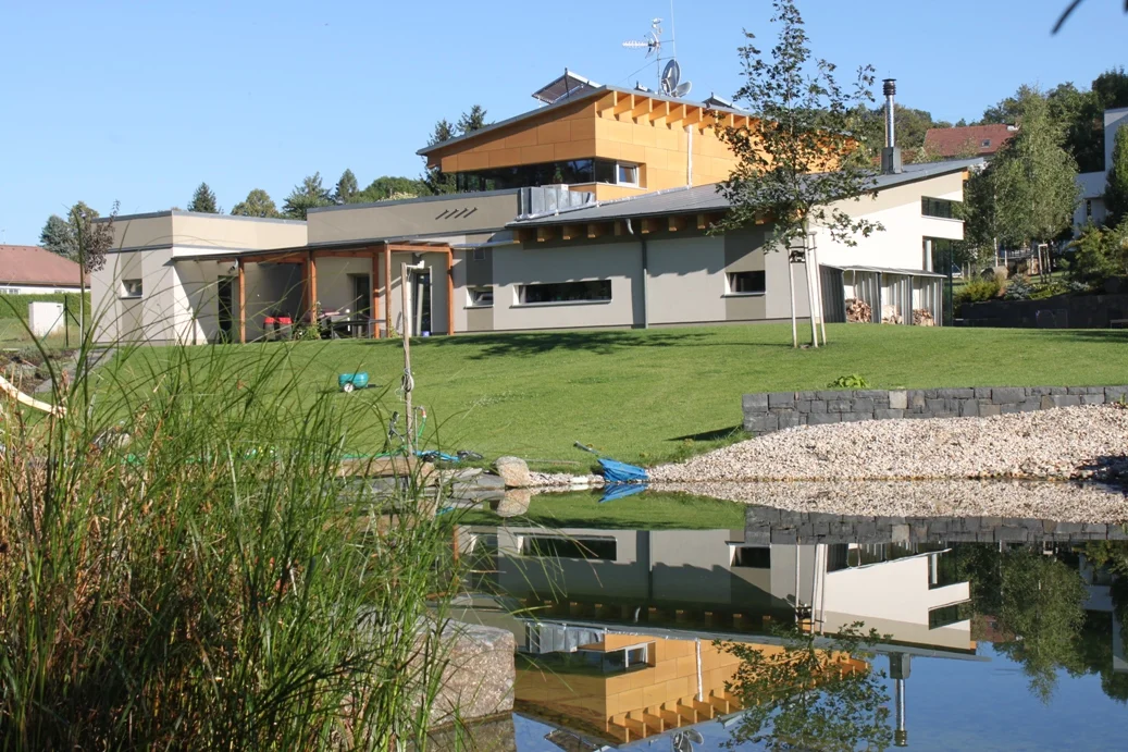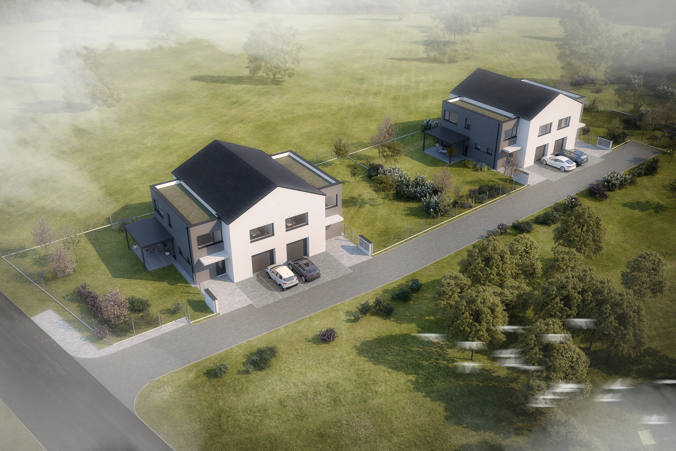 V tomto výjimečném obytném satelitu u Plzně předepisuje regulační plán výhradně sedlovou střechu. Nebylo snadné se tu také vyrovnat s terénem, který značně klesá po úhlopříčce stavební parcely.