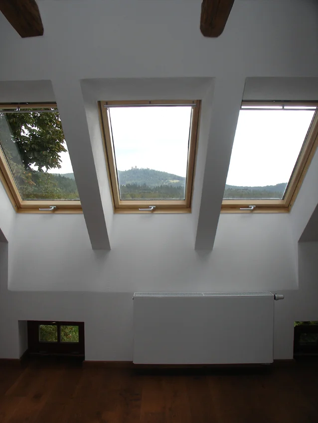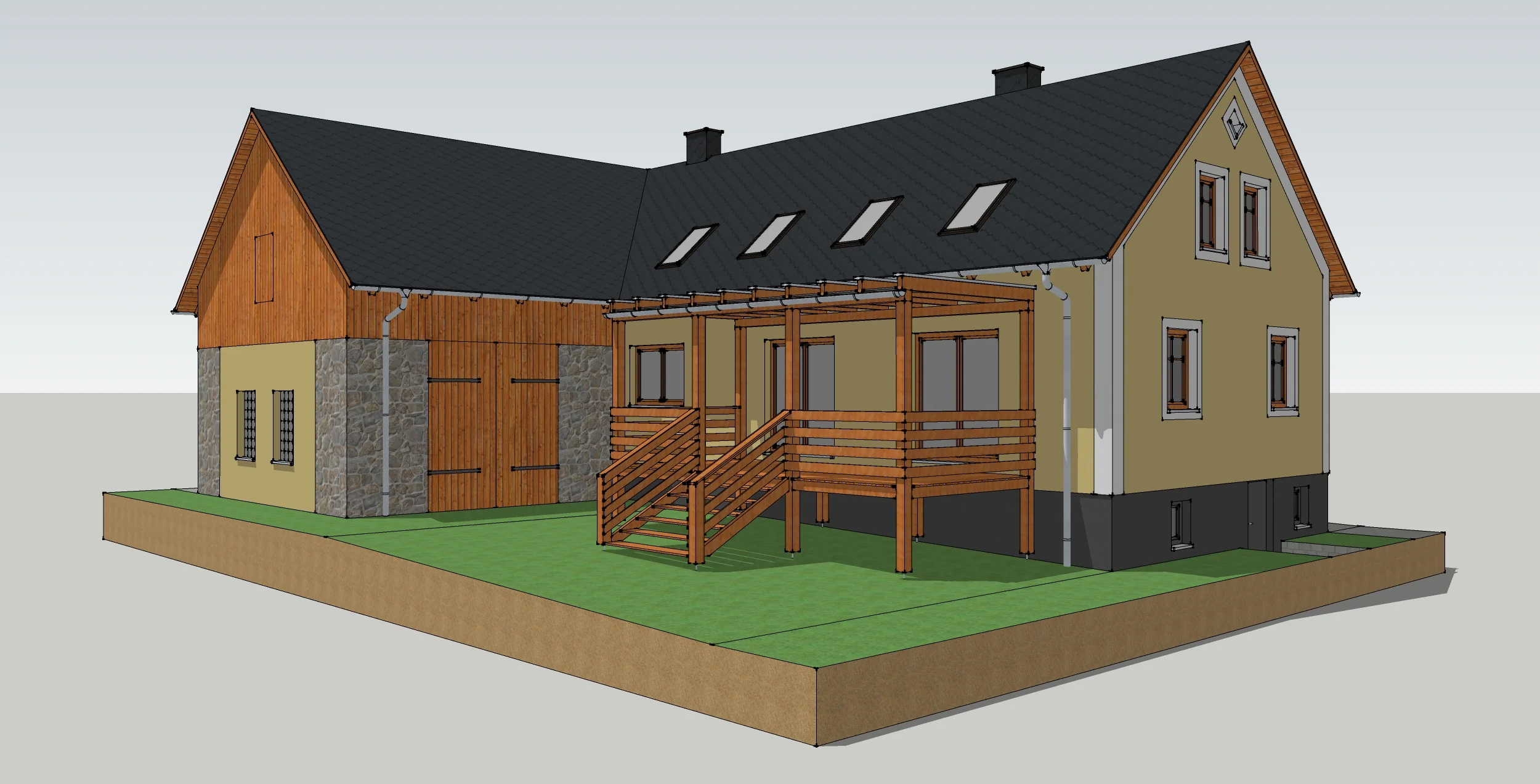 Adaptace původně značně narušené chalupy se snahou o zapojení původních chlévů a stodoly do relativně složité hry vnitřních prostor.