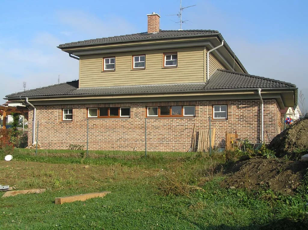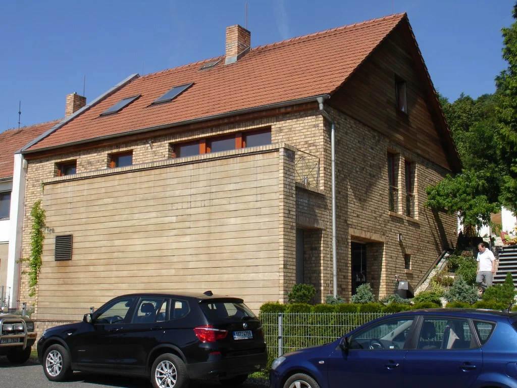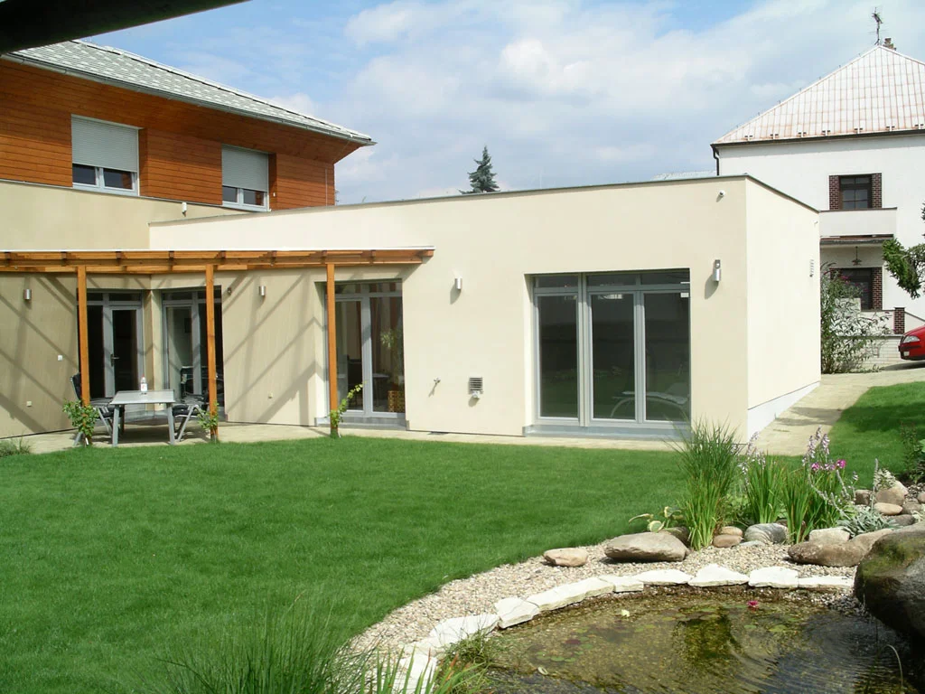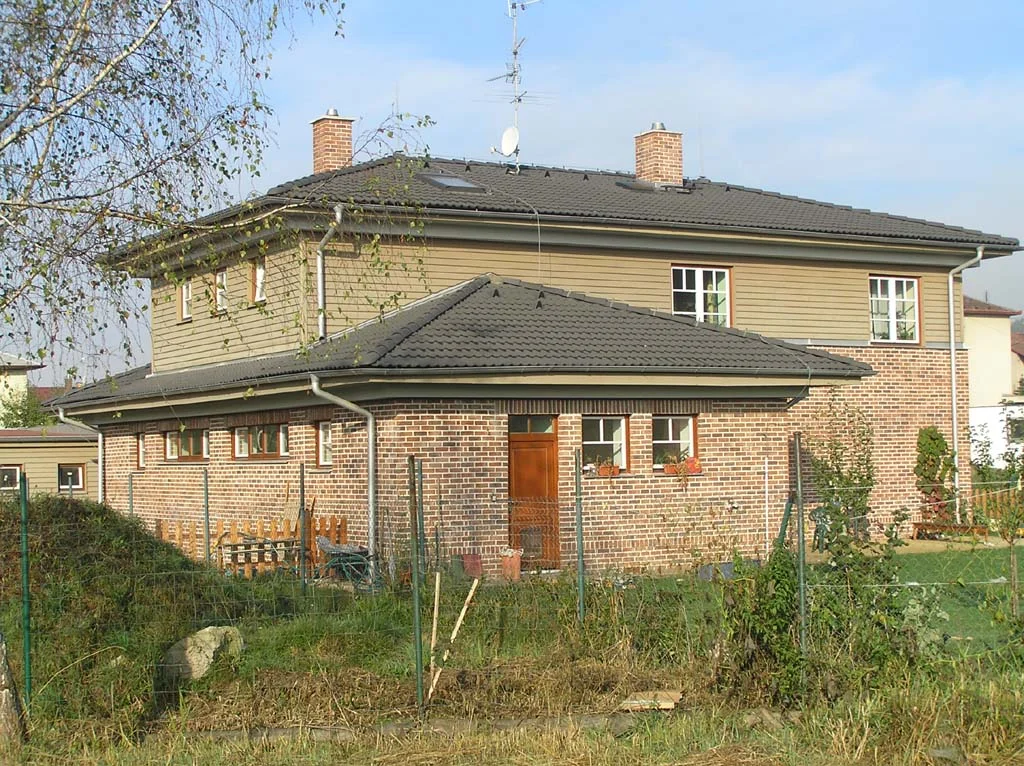 Rodinný dům na přání investora v tradičnějším duchu s ozvuky anglické i české meziválečné architektury; blízkost rušné komunikace si vyžádala půdorysné řešení do tvaru písmene T.