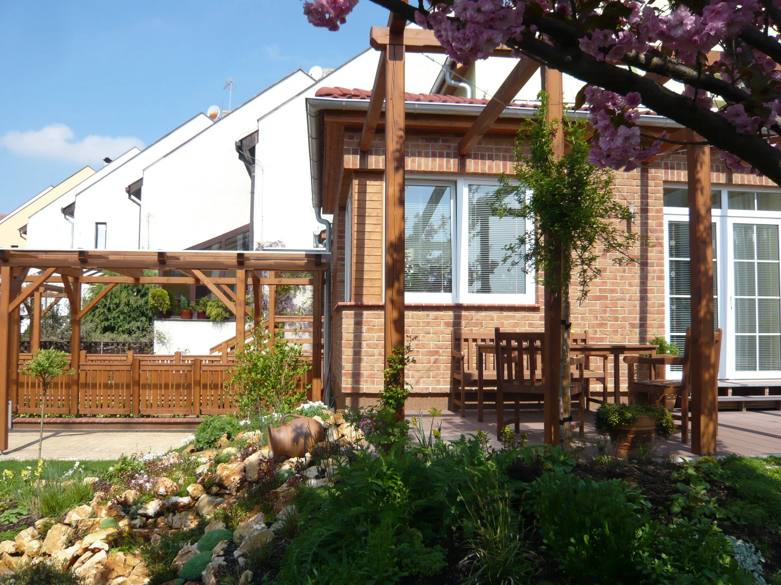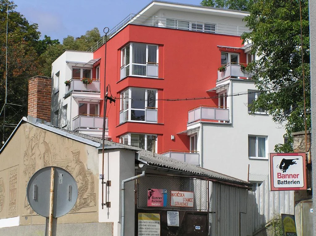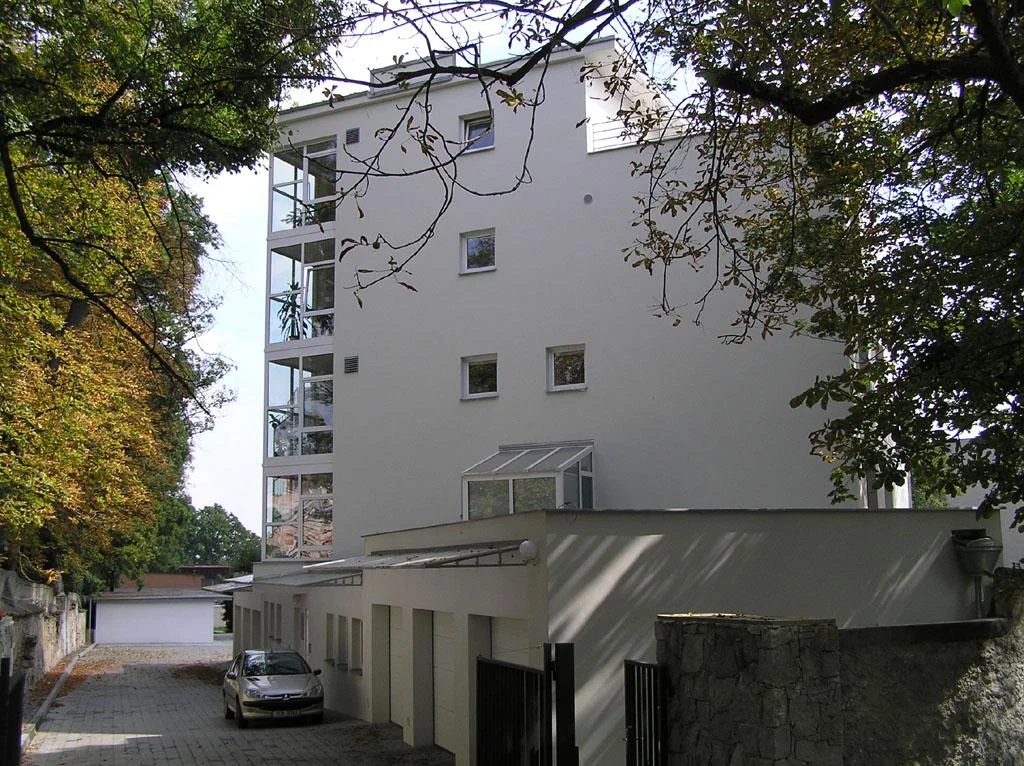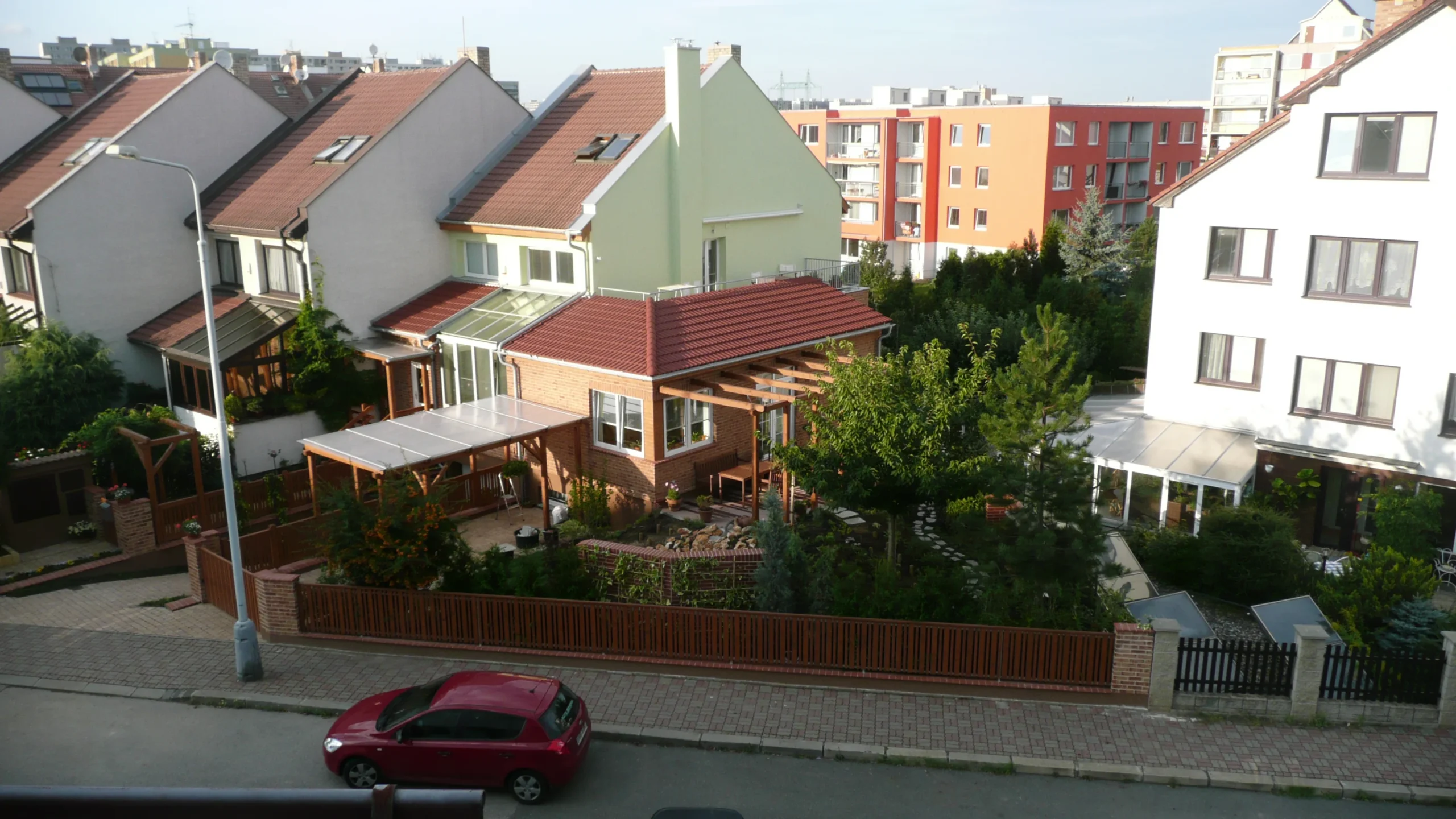 Terasový dům s pěti byty nestejné velikosti, garážemi a vlastním pozemkem v příjemné lokalitě pod městskými sady.