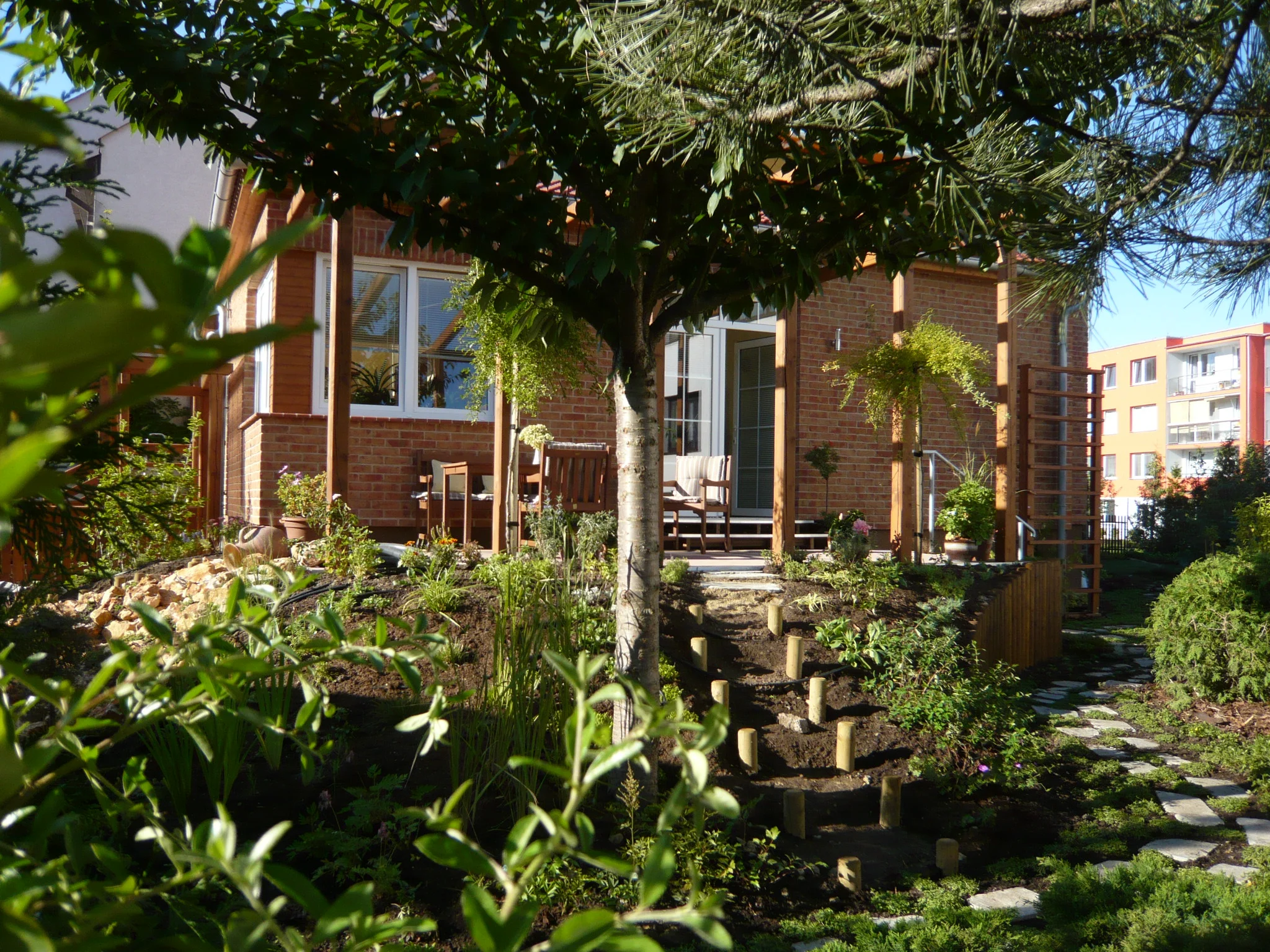 Domek nevelkých rozměrů na komplikované parcele saturuje velmi dobře potřeby čtyřčlenné rodiny