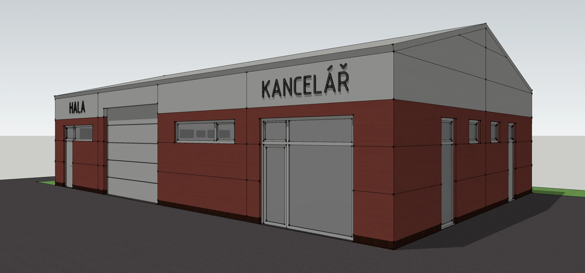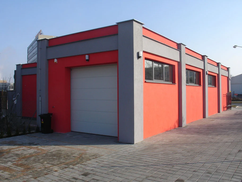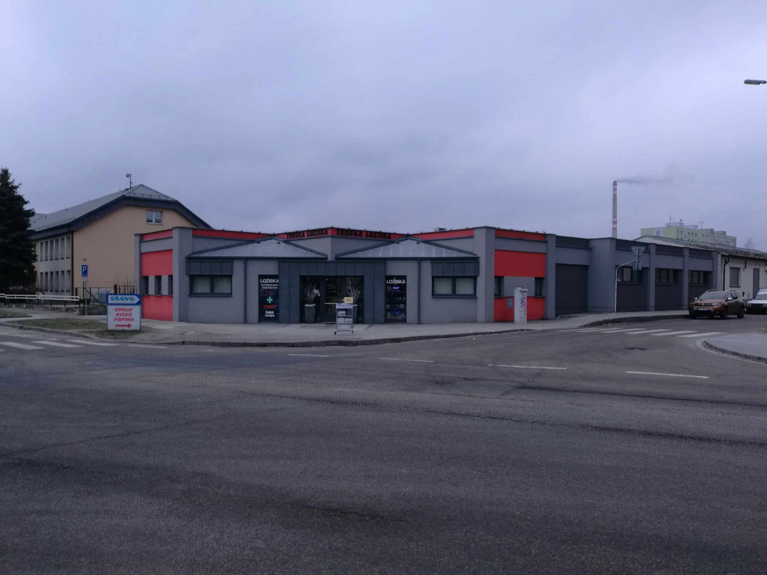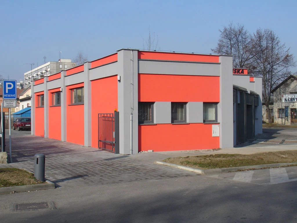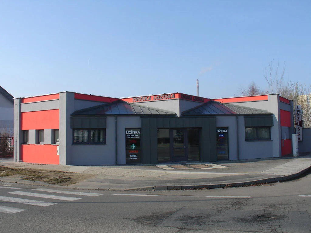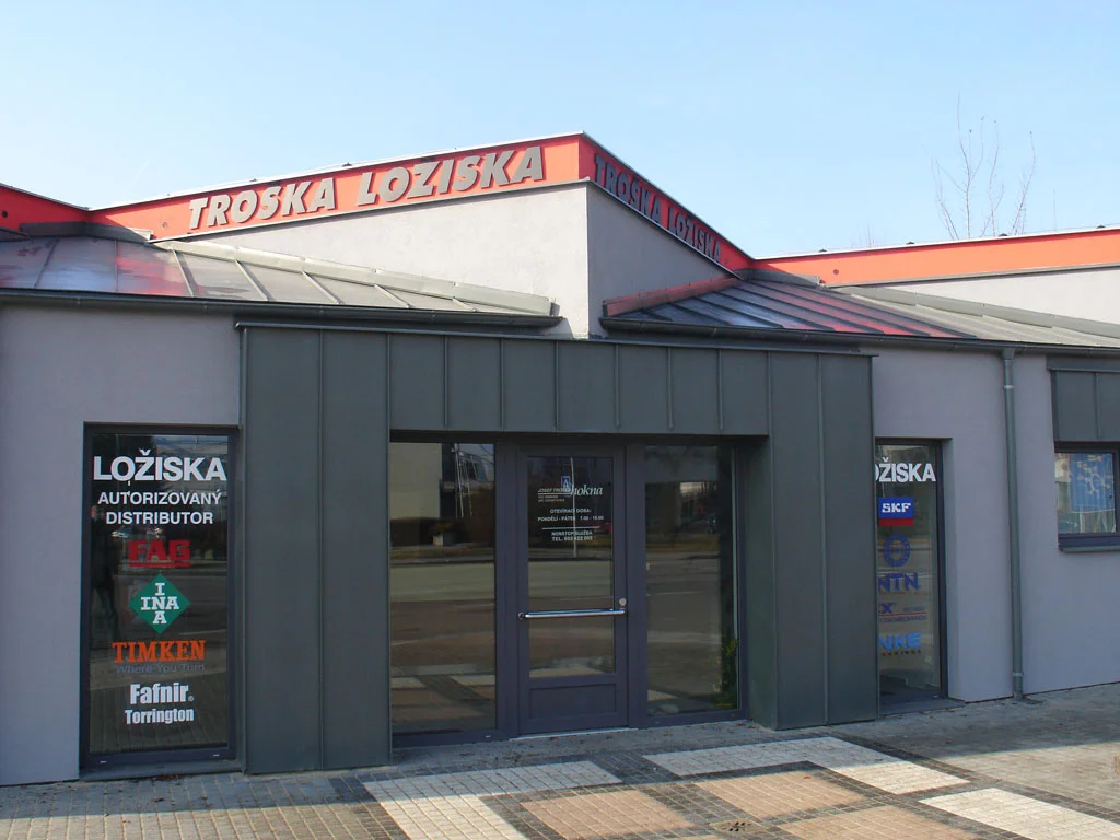 Pavilon prodejny, specializované na ložiska a příbuzný sortiment, se snahou o přiměřeně industriální výraz.