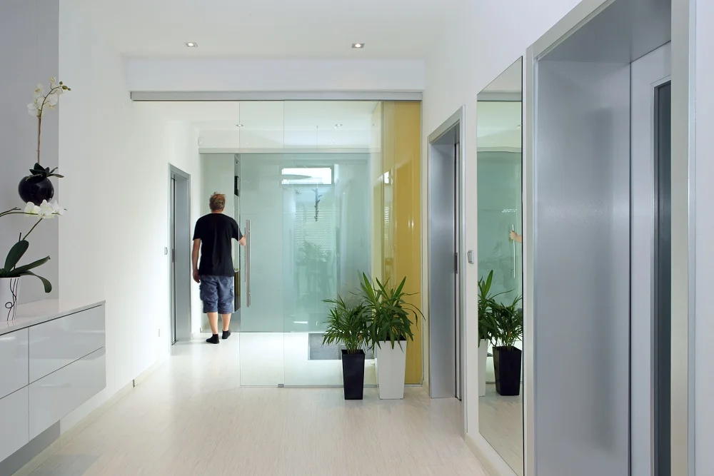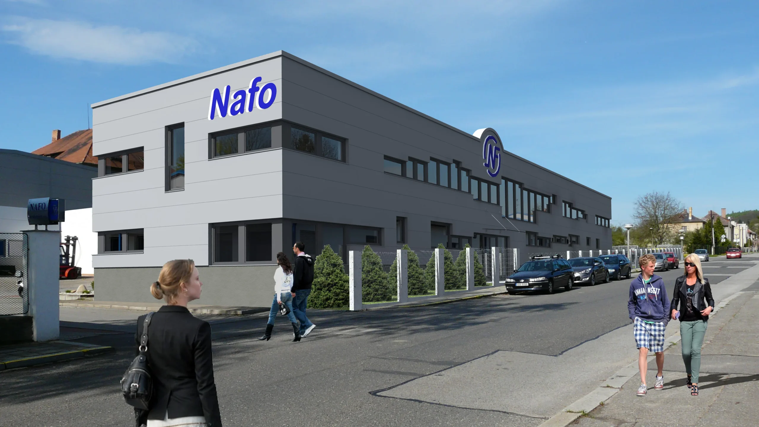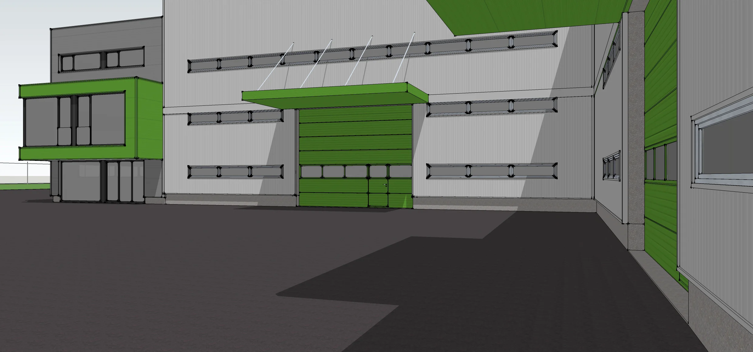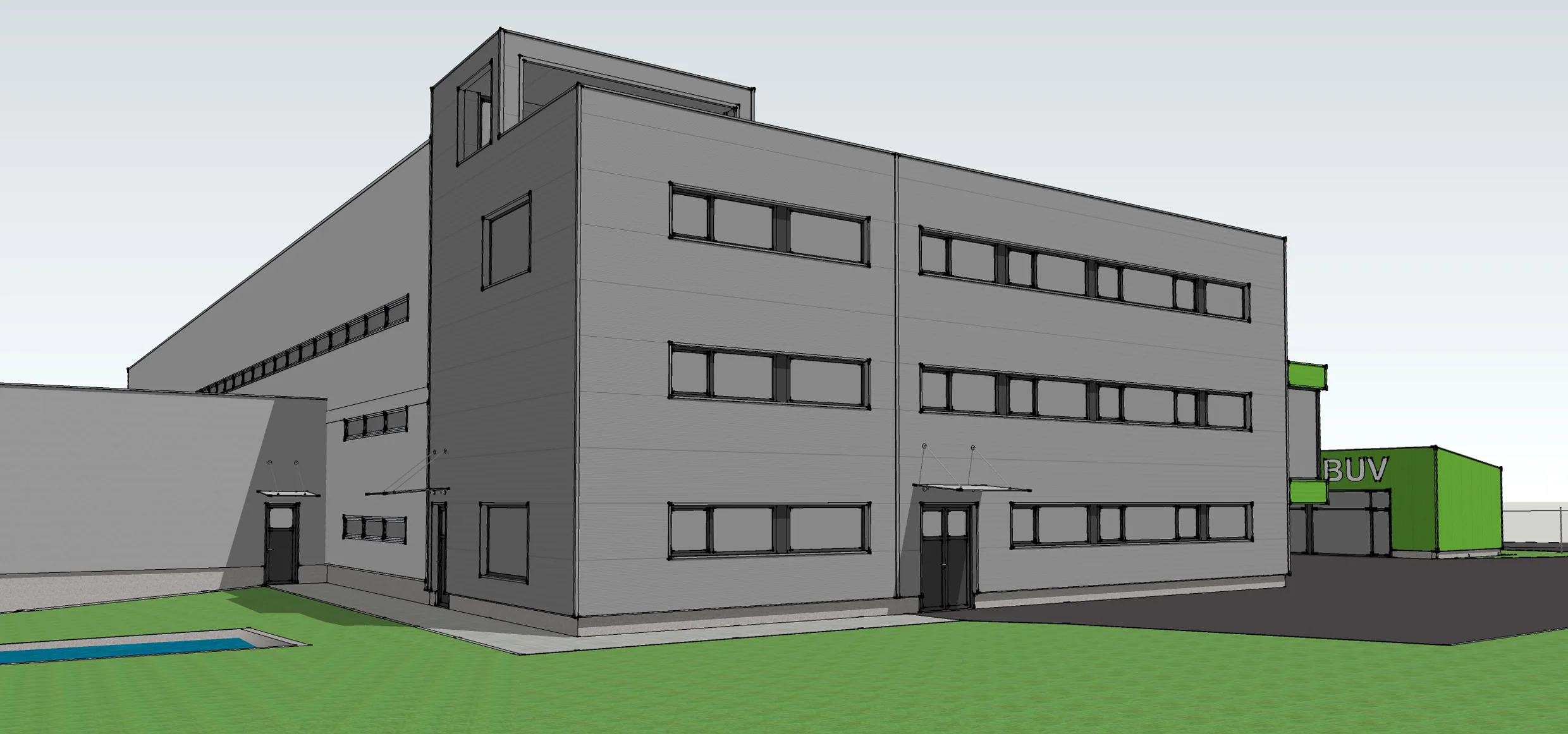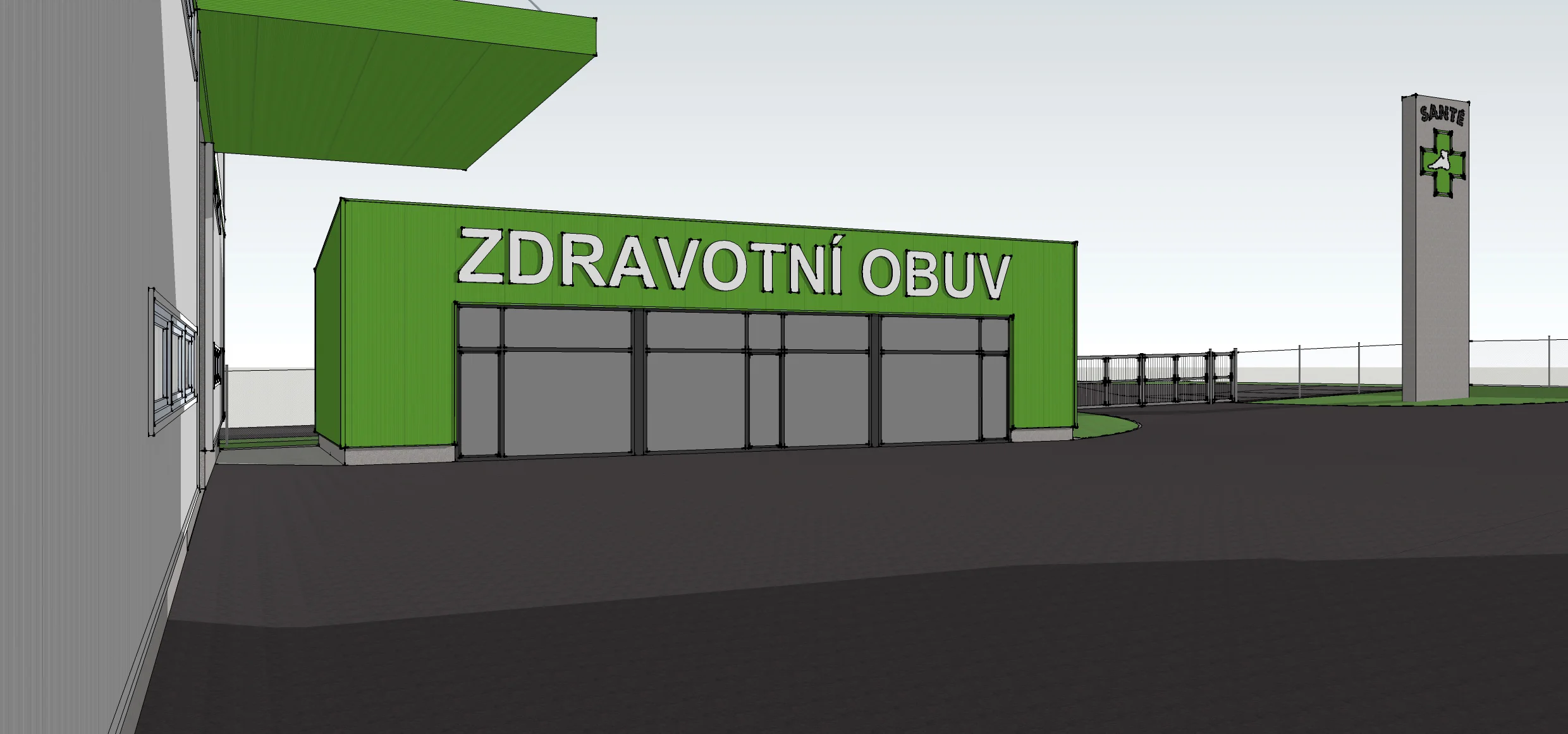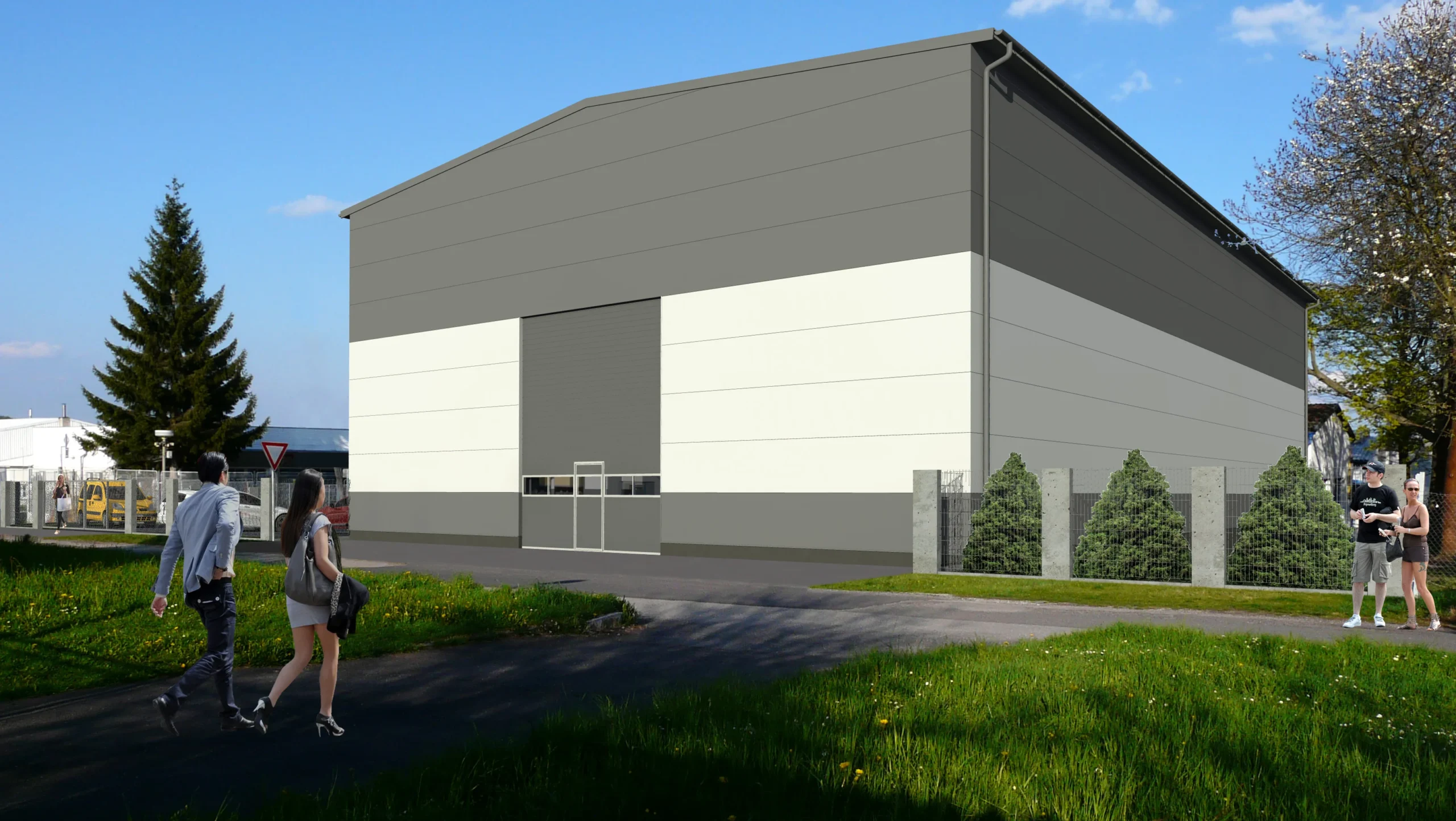 Pavilon prodejny, specializované na ložiska a příbuzný sortiment, se snahou o přiměřeně industriální výraz.