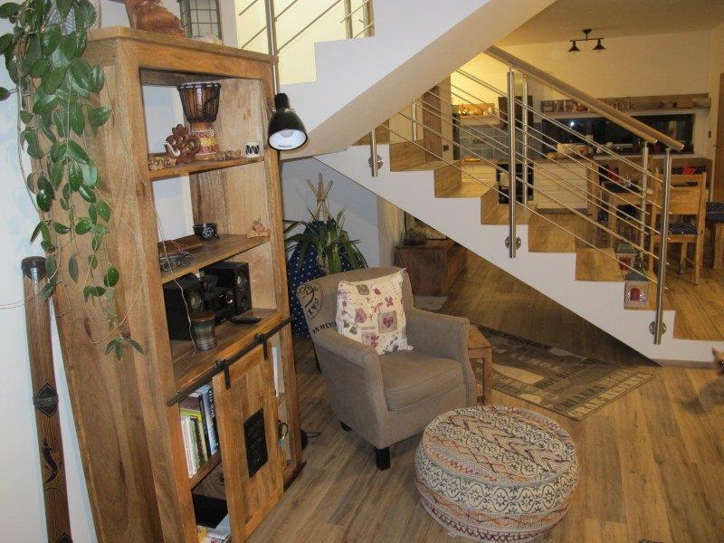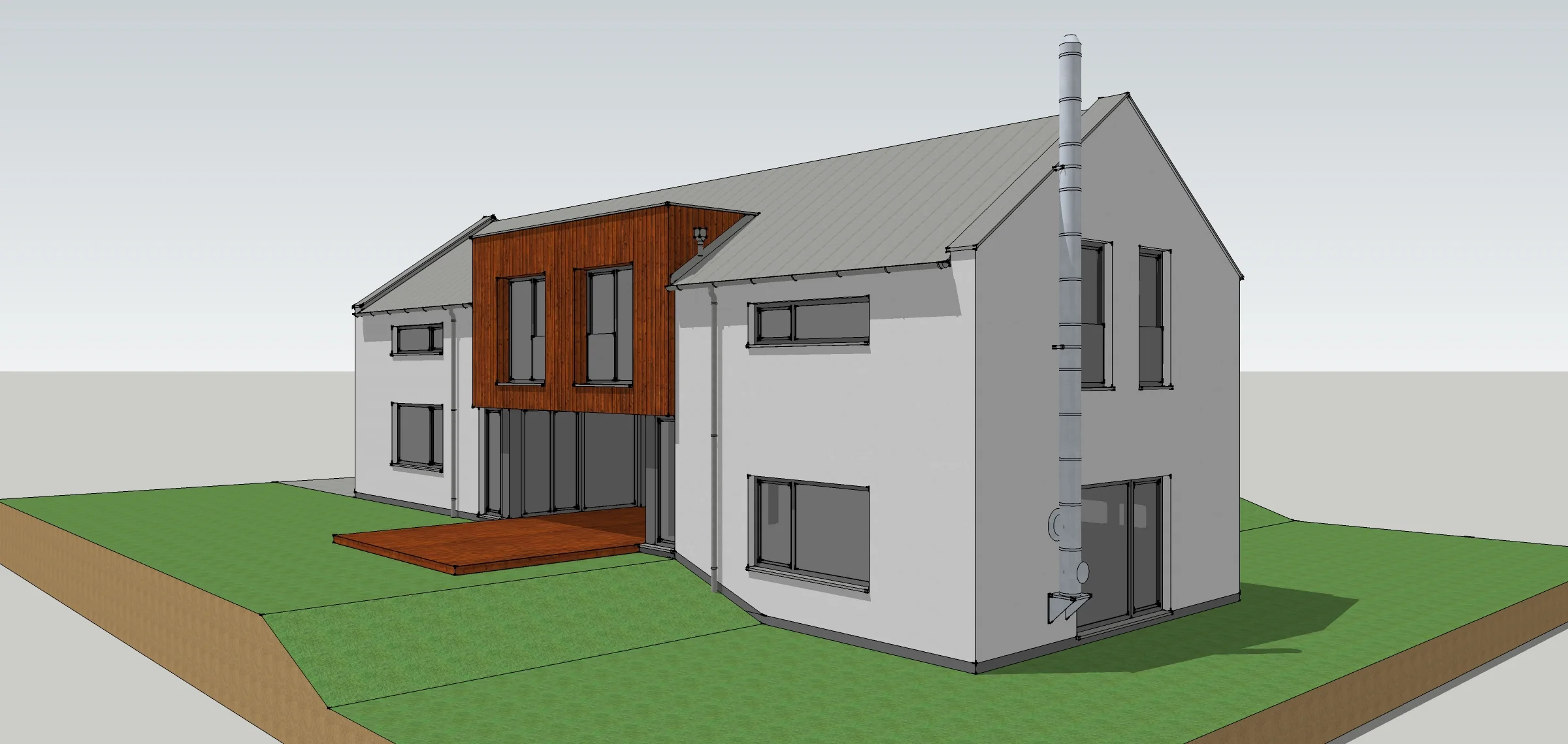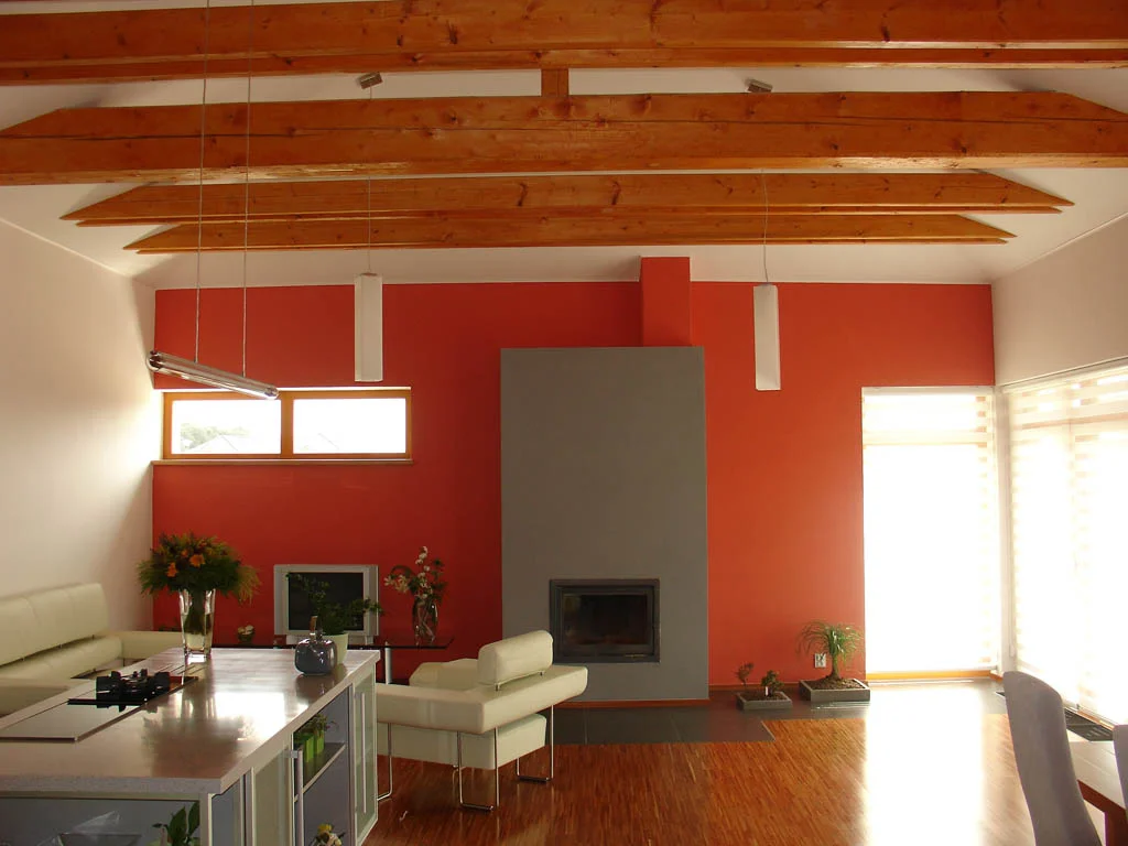 Menší domek s volnou dispozicí a překvapivě účinným vyzněním rodinného pokoje, otevřeného do krovů.