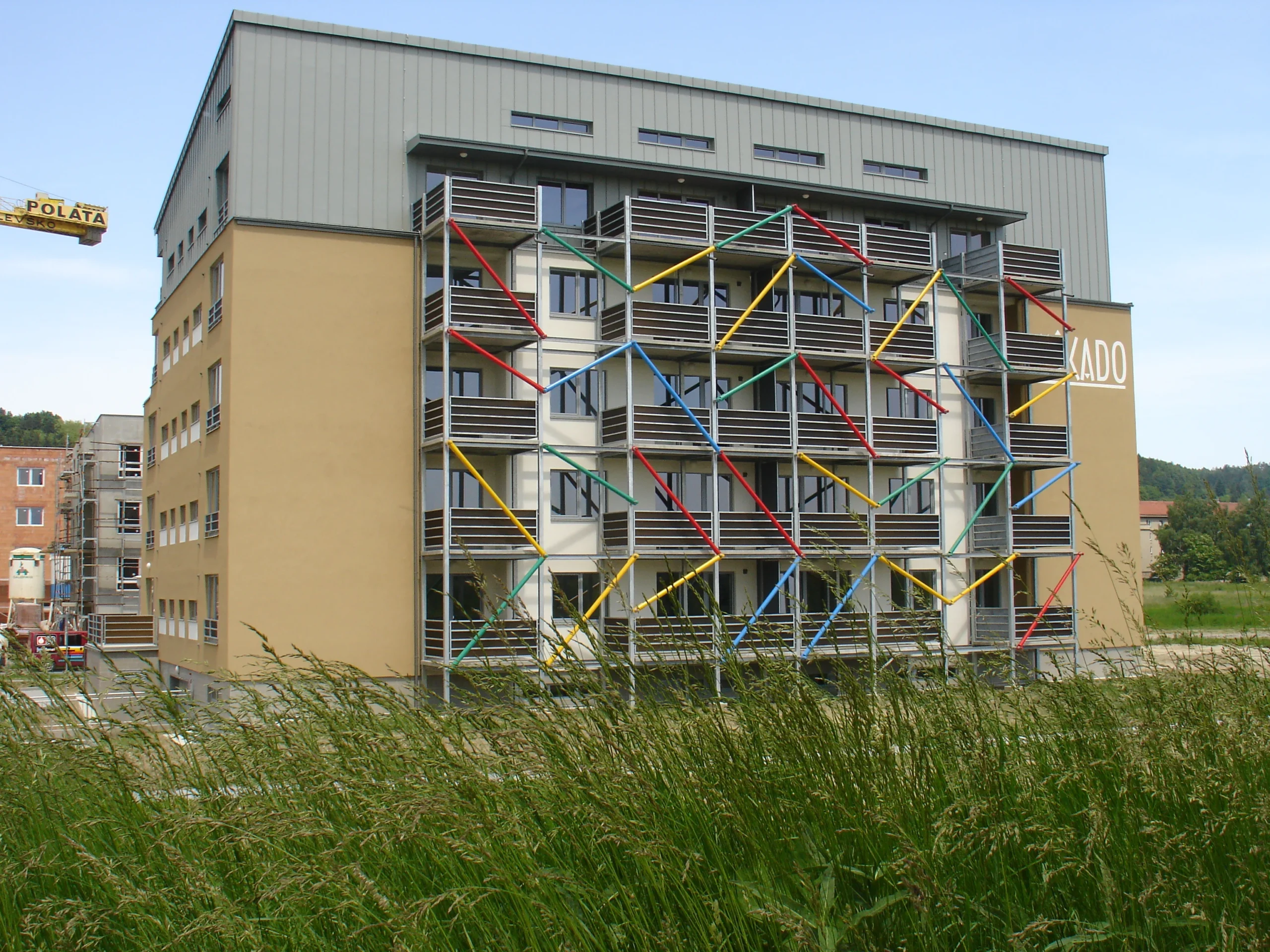 Dům v obytném souboru Jezárky zahrnuje 30 bytů (byty v horním podlaží mají mezzonetové řešení) sociálního bydlení. V suterénu je umístěno 20 odstavných stání pro automobily. Tři byty jsou řešeny k bydlení invalidních osob. Dům je nazván Mikado: motiv této hry se volně objevuje v řešení.