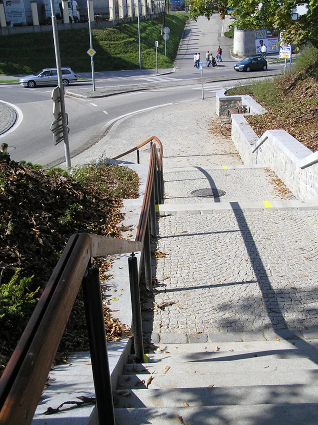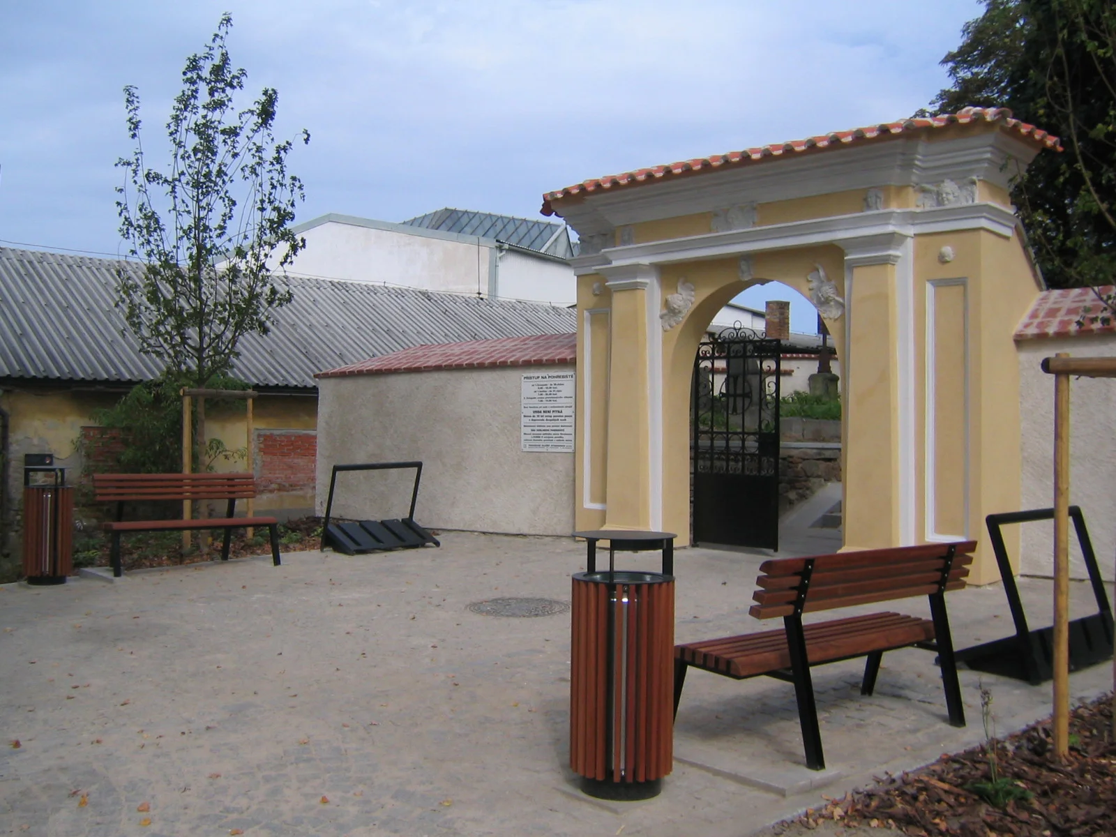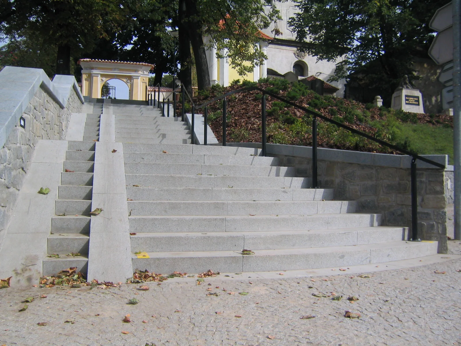 Stavební úpravy stávajícího rampového schodiště ke vstupní západní brance hřbitova u kostela Sv. Václava, včetně opravy památkově chráněné branky.