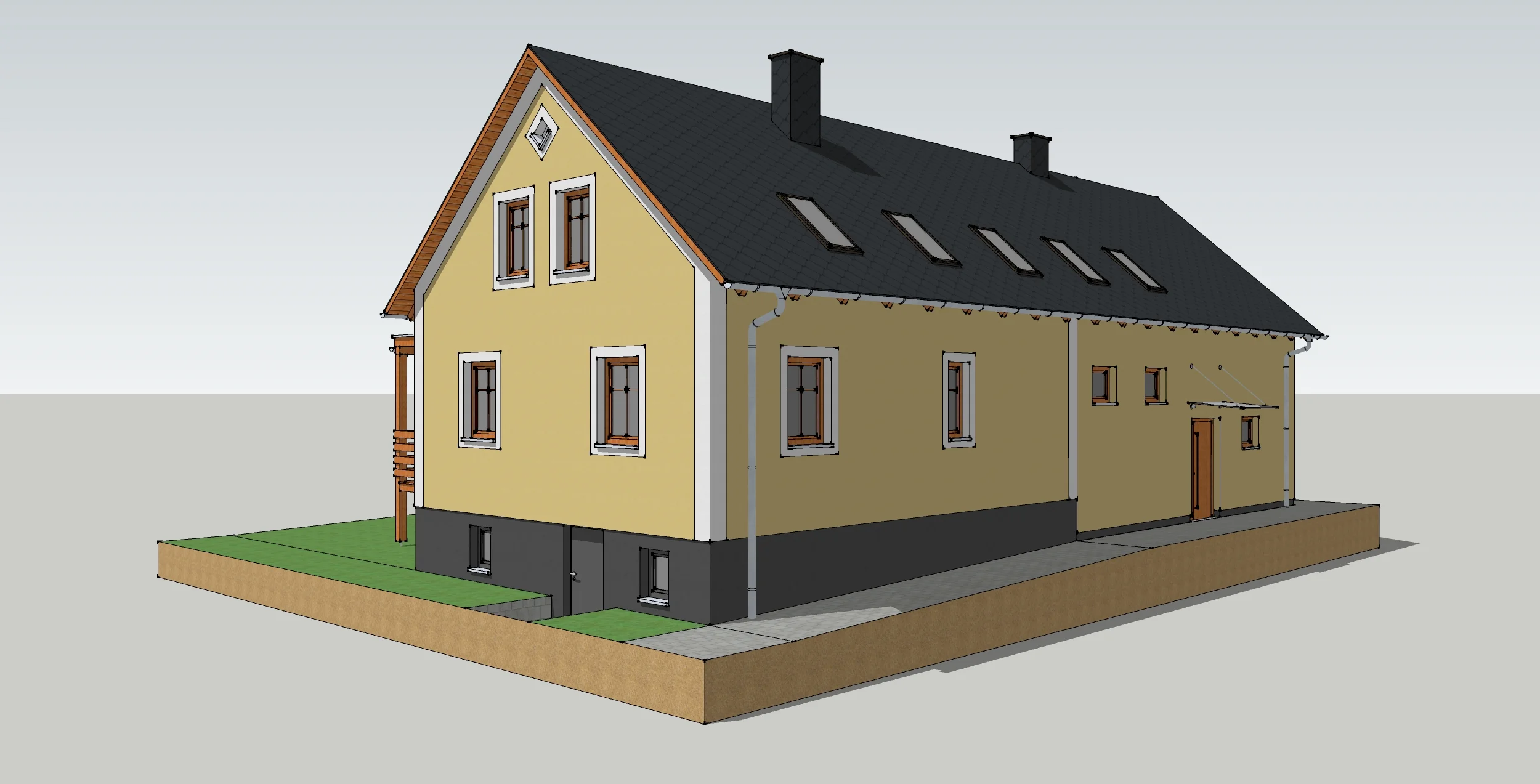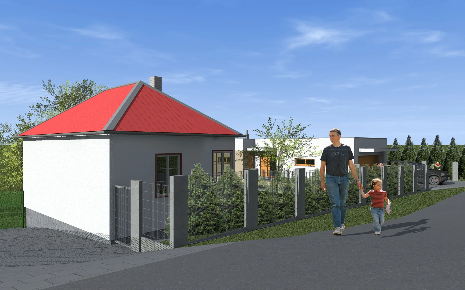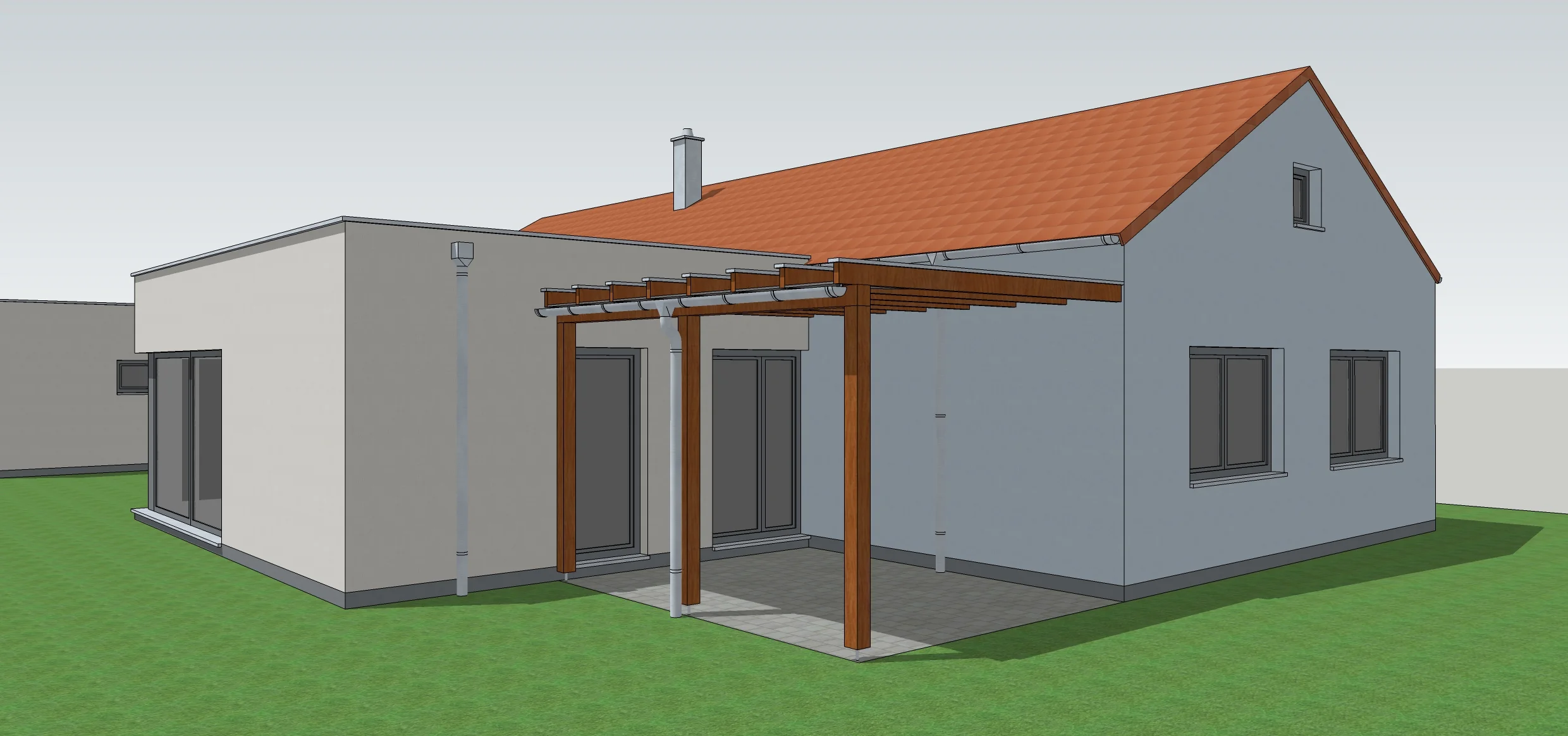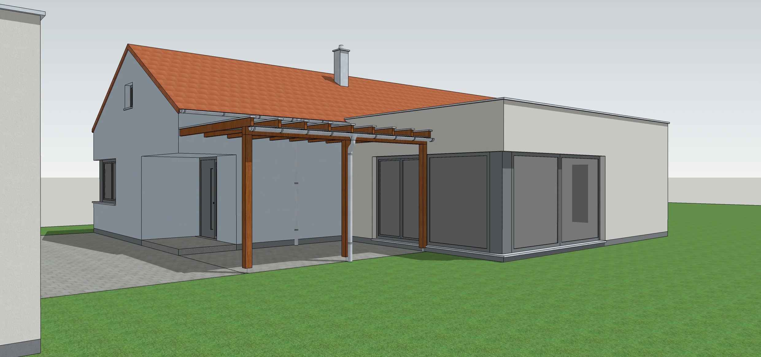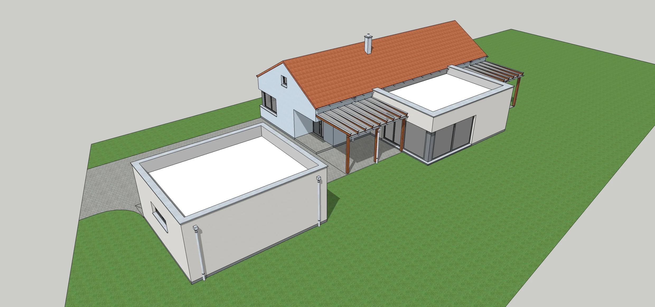 Dostavba koncového řadového RD, ve kterém mohou bydlet děti i prarodiče.