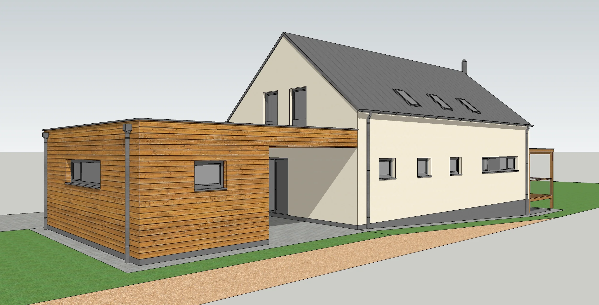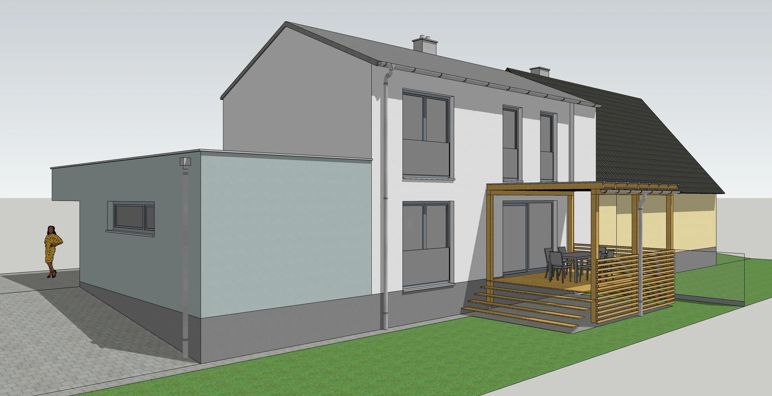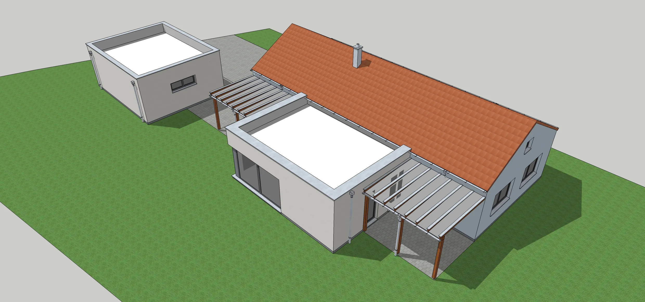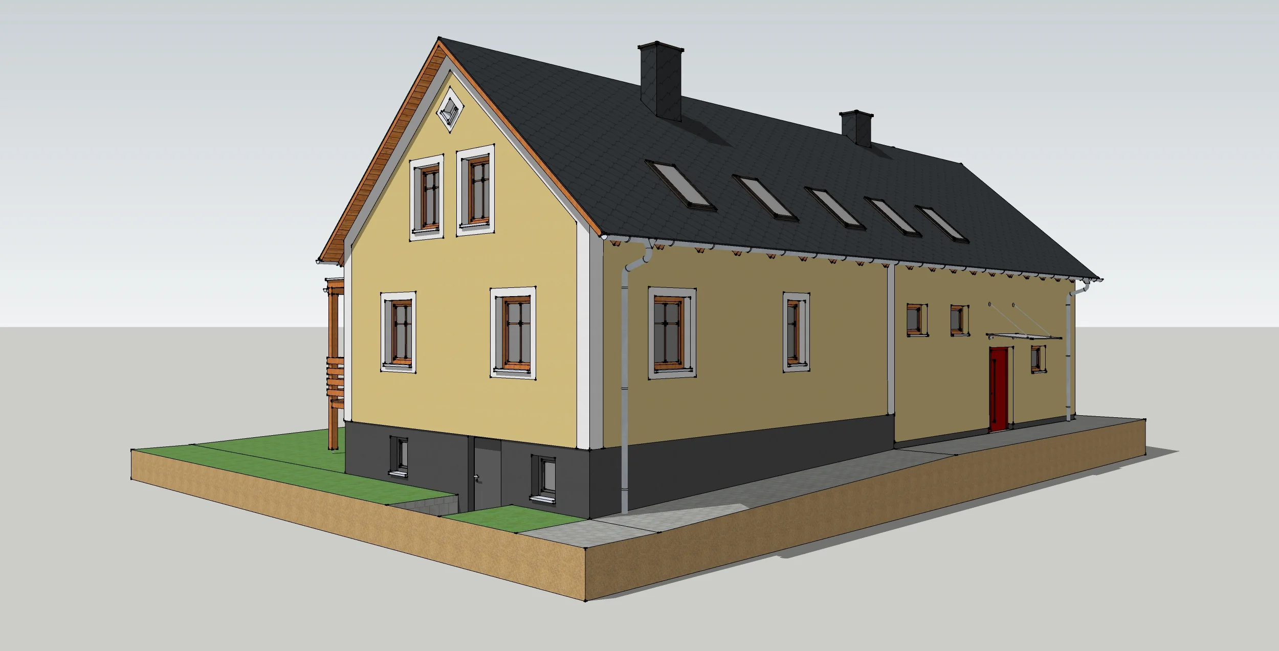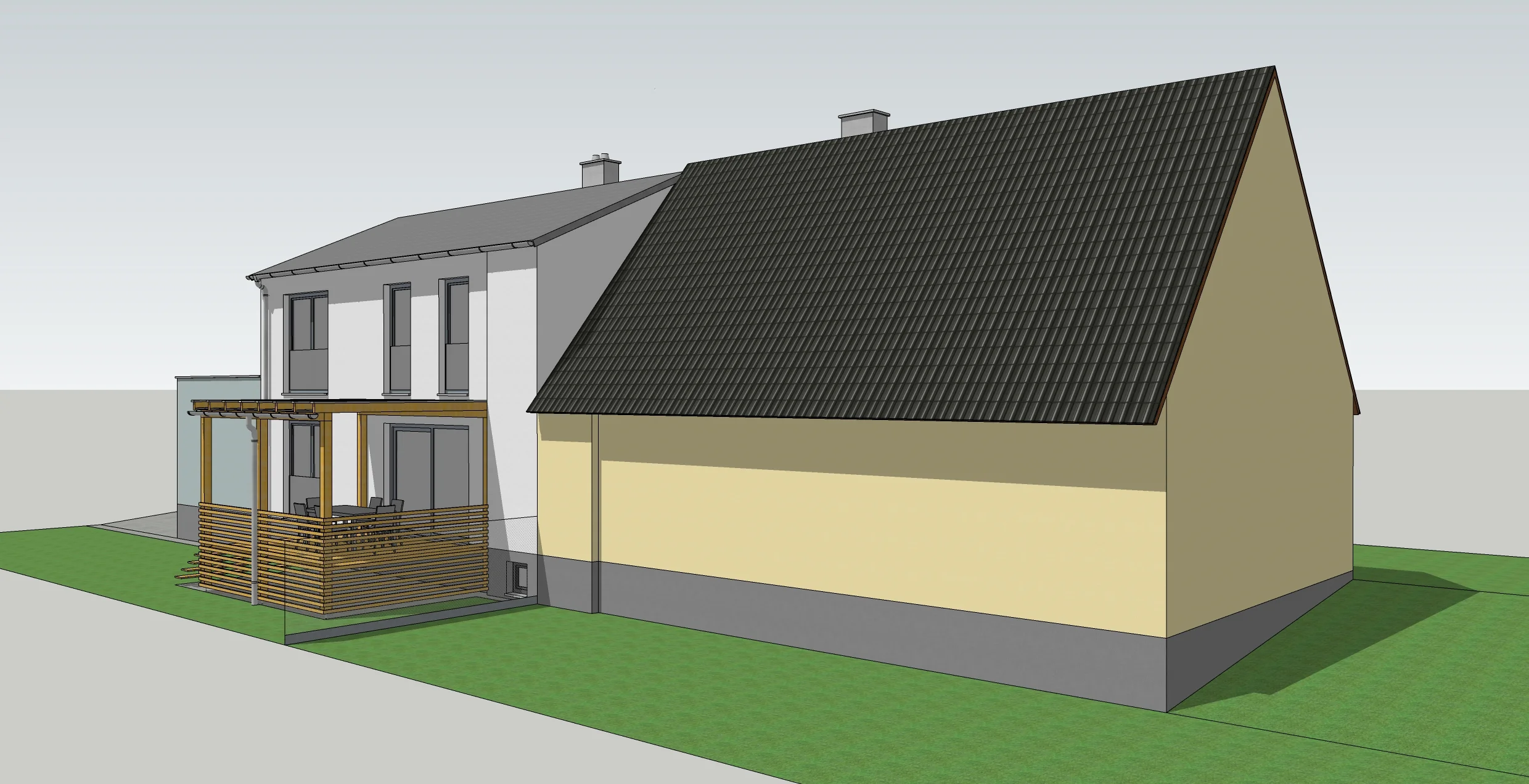 Dostavba koncového řadového RD, ve kterém mohou bydlet děti i prarodiče.