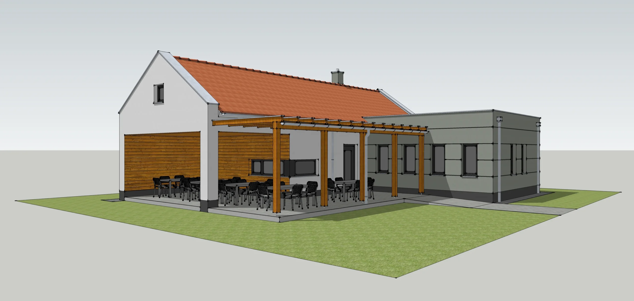 Přestavba sice aluduje ikonografii původního stavení, využívá však prvky i materiály soudobého stavitelství.